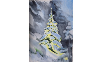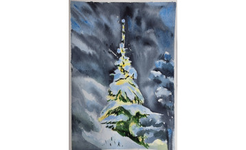 Увидим на практике, как работают соль и спирт на разной акварельной бумаге, и в какой момент лучше "посолить", чтобы получить настоящий снег.