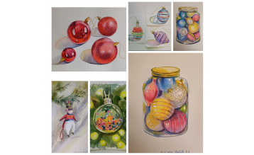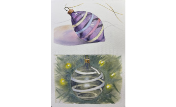 "Продолжим рисовать стеклянную новогоднюю игрушку: изобразим её в цвете. Познакомимся с техникой лессировки, увидим, как с помощью тона вывести объект на передний план. И главное — познакомимся с основными принципами изображения стекла в акварели.