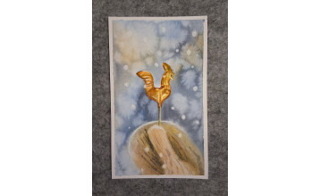 Создадим контрастную композицию с интересным фоном и увидим, как эффектно смотрится приём раздвигания красочного слоя водой и пигментом.