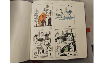 Рисуем разворот с разными фактурами городской среды: тренируемся в использовании изученных видов штриховок. В уроке также обсудим общие принципы ведения работы и нюансы внедрения цвета.