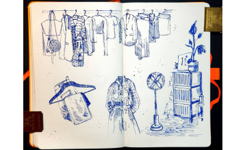 Погружаемся в быстрый и лёгкий скетчинг. Обращаем внимание на окружающее пространство дома, зарисовываем повседневные элементы гостиной и гардеробной. Ловим момент и передаём атмосферу!