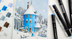 - Немножко отвлечемся от маркеров и попробуем с вами сделать небольшой рисунок капиллярными ручками с размытием водой. В этом уроке мы вернемся с вами к теме света и восприятия одного и того же сюжета при разном освещении.