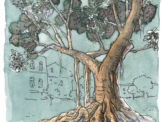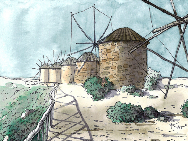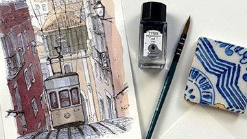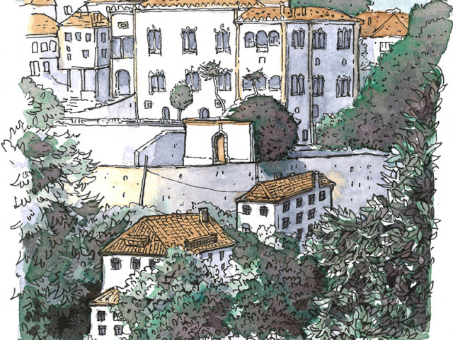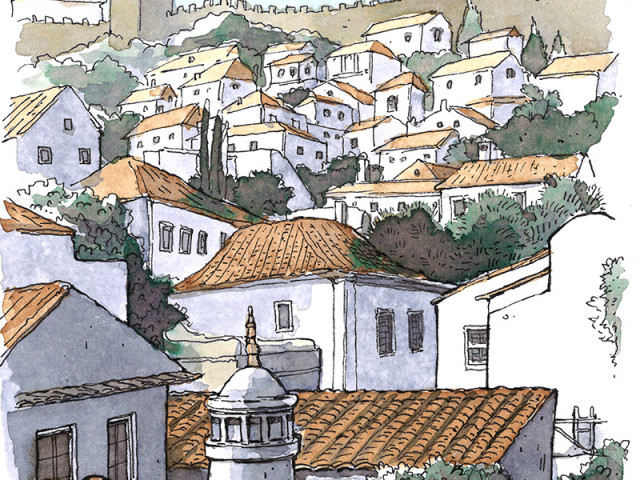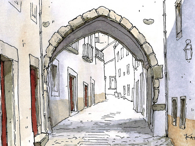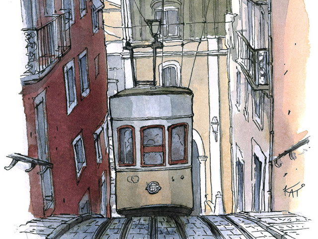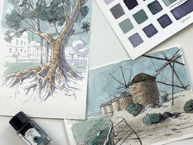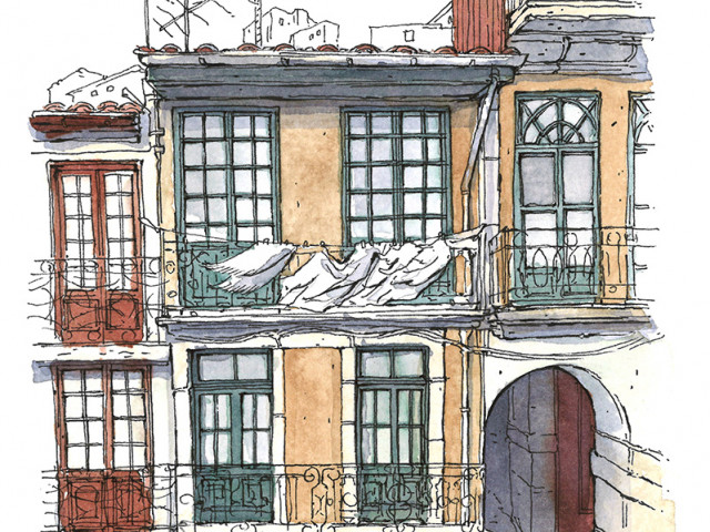 Като живёт в Северной Португалии и рисует городские скетчи, ботанические и ландшафтные зарисовки.