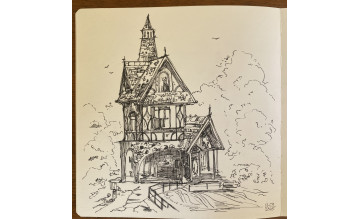 С помощью чернографитных карандашей и ручек мы научимся передавать текстуру лесной растительности и реалистичные детали здания.