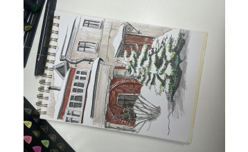 В нашем сегодняшнем уроке Екатерина Пластилина подготовила прекрасную ёлочку в жилом дворе - живую и эстетически причёсанную в манере архитектурного скетча.
