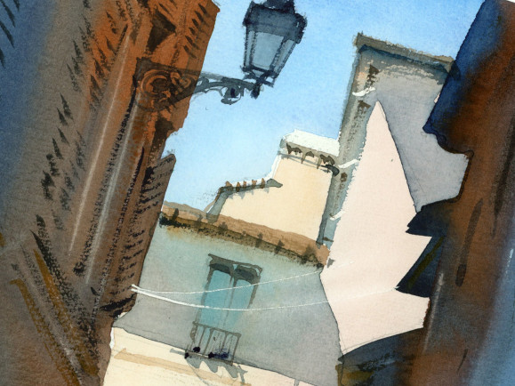 В этом мини-курсе мы работаем над акварельным пейзажем итальянской улочки и выстраиваем изображение через тон. Разберём, как тоновой эскиз помогает упростить сложный референс и разложить его на слои света и тени.
