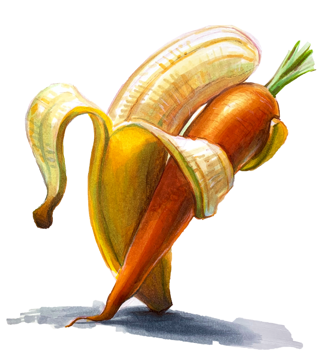 Наша задача – нарисовать влюбленную пару: банан и морковку.
