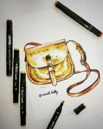 Спасибо огромное за такую возможность и море вдохновения!!!! Всегда интересно пробовать новые стили и развиваться! Очень подробный и интересный видеоурок! Никогда не думала,что смогу научиться рисовать маркерами,но...вот такой вариант сумочки у меня получился)))