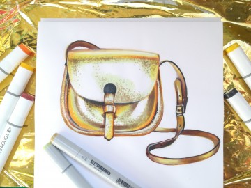Преподаватель подробно разберёт, КАК можно изобразить эффект золотого блеска на матовой поверхности сумочки, как добиться объема при ограниченной гамме маркеров, поговорим о некоторых особенностях материалов и, конечно же, вы сможете создать эффектную иллюстрацию, даже если никогда раньше не рисовали спиртовыми маркерами!