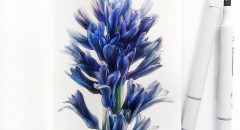 Узнаем как работать с темным фоном. Порисуем большие красивые цветы. И конечно, поговорим о материалах: маркерах, бумаге, линерах и цветных карандашах. Поймем какие у них особенности и как ими работать.