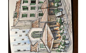 - Кто хочет научиться с нуля или прокачать уже имеющийся опыт в городском скетчинге;