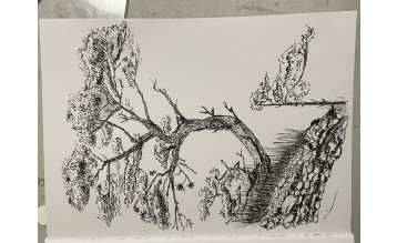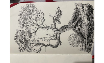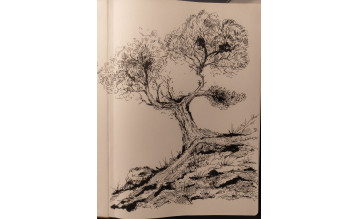 Самый интересный этап: будем прорисовывать детали листвы, ствола и ветвей, создавать фактуру коры с помощью линий и штриха.