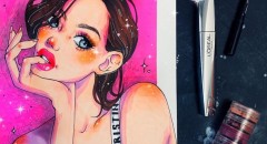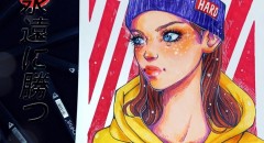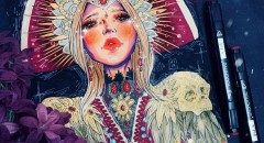 Рисуем скетч карандашом, комбинируя с цветными маркерами, а также параллельно добавляя стилистических особенностей.