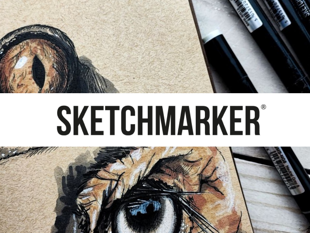 В уроках Екатерина рисует материалами бренда — лайнерами, маркерами и на бумаге SKETCHMARKER.