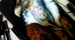 В этом уроке мы оживим глаз совы с помощью белой гелевой ручки, нарисуем сложную фактуру перьев, а также узнаем о том, как вписать макро ракурс в белый фон.