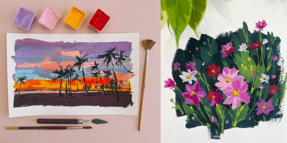 Гуашь дарит настоящие эмоции: краски — это цвет, это удовольствие от жирненьких мазков, от контакта с бумагой и смешивания оттенки. Это — море возможностей для воплощения любых идей и стилистических решений. Я очень рада воплотить часть из них в реальность в этом курсе: чтобы вы тоже получали столько же удовольствия от рисования!