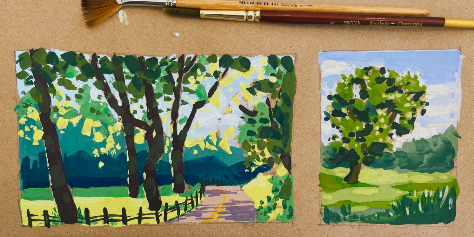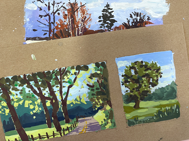 Практика: рисуем пейзажные композиции, закрепляя знания из предыдущих уроков.