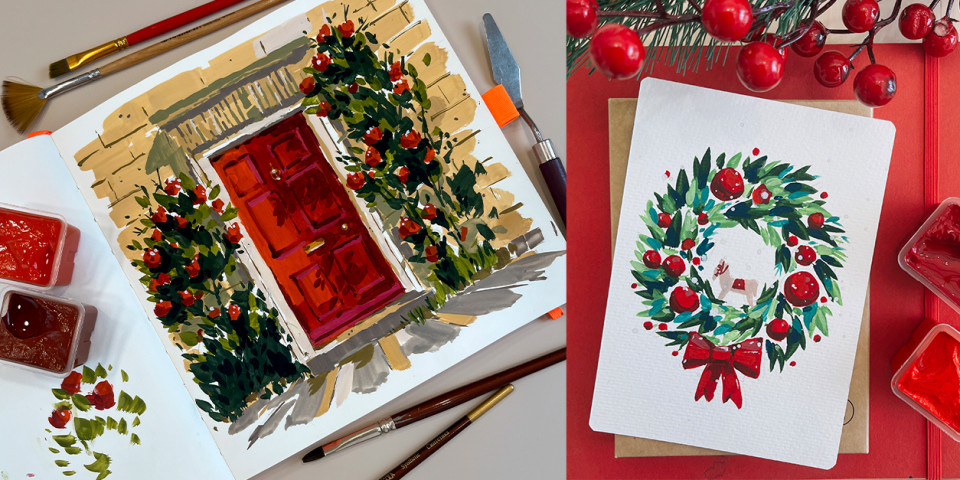 Учимся делать "праздничные зарисовки": для журналов, открыток, блогов, сайтов и книг. Разбираемся, как выхватывать удачный фрагмент из праздничного декора, который создаст настроение в скетче.