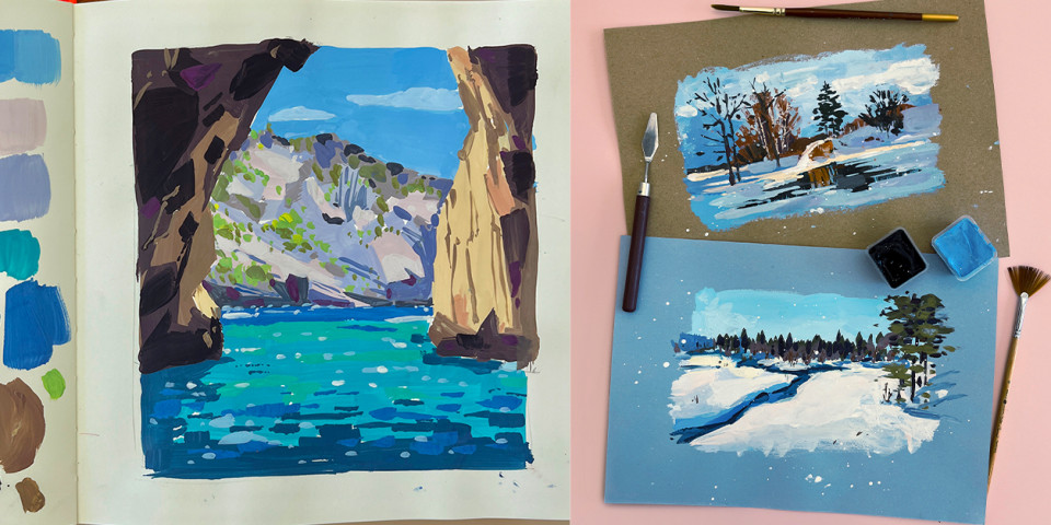 3. Скетчинг гуашью