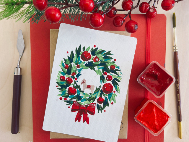 Рисуем декоративную открытку с венком.