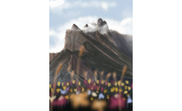 У цифрового скетчинга есть масса преимуществ, и один из них это многоплановость и возможность коррекции композиции созданием визуального эффекта воздушной перспективы, красивого расфокуса на первом плане для появления в работе расстояния. Солнечная и весенняя тема в скетче цветущие луга в горах.