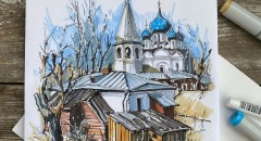 Сочетание архитектуры и природы, компоновка в листе и технически важный момент правильного изображения крыш - их стыковки, перспективы и конструктивные элементы - все разбираем в уроке.