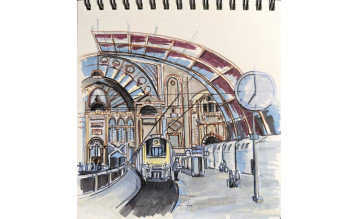 Динамичный сюжет - вокзал, люди, обилие деталей, конструктив и разгул фантазии. Увеличиваем сложность скетчей по мере прохождения курса. Почувствуйте свой рост и бесстрашие на фоне выполненного и изученного объема.