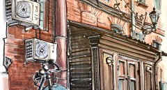 Так как это архитектурный скетчинг, не предполагается большая палитра и больше в цене скорость в работе и точность передачи светотеневого баланса в скетче. Старайтесь объединять объемы и делать выборочно самые "вкусные" моменты и вовремя остановить себя, оставив воздух и легкость! -