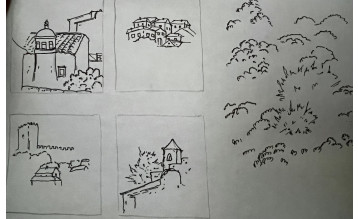 Давайте возьмем простую бумагу и выполним зарисовки этих камней, уделяя внимание текстуре. Пусть они получатся даже более утрированно, но зато они не будут какими-то неважными объектами, в которых не угадать огромный валун. -