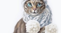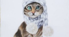 Автор поделится фирменной техникой иллюстрации изображения фактур мягкой шерсти, расскажет, как их сделать реалистично и детально, как нарисовать эффект живых выразительных глаз, разберёт дополнительно фактуру вязанных аксессуаров нашей котейки: шапочка и шарф с помпонами.
