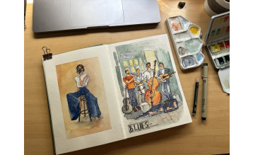 Люблю скетчинг. Чаще всего рисую маркерами, акварелью, простыми карандашами и линерами. Люблю миксовать техники. Но вообще, чем только не рисовала по приколу, включая кисточки-пушки, выросшие на побережье, морскую воду, вино, чай, кофе.