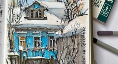 Ловим настроение любви к архитектурным скетчам, покосившимся ставенкам, всегда атмосферным и полным деталей.