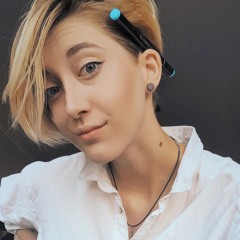 Юля - универсал в работе с материалами, настоящий мастер совмещать, дополнять и находить преимущества в каждом новом миксе: от простого карандаша до золотой патали.