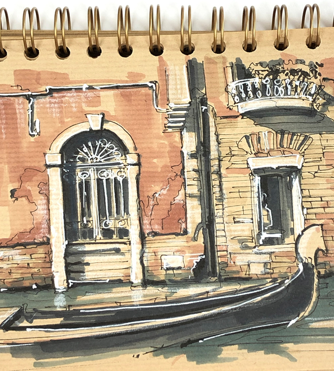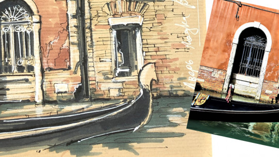 В нашем рисунке цвет будет играть ключевую роль в передаче фактуры исторической стены красивого венецианского красного оттенка с подтеками и трещинами.
