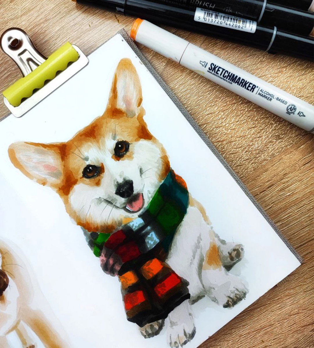 Зима близко - пора утепляться! Достаем шарфики! Вот и милый корги с нашего нового бесплатного мастер-класса принарядился. Как такого не нарисовать?