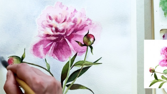 В этом уроке мы будем писать акварелью пышный пион, передавая его нежность и объём. Вы узнаете, как с помощью оттенков и плавных переходов лепестки становятся живыми и воздушными.