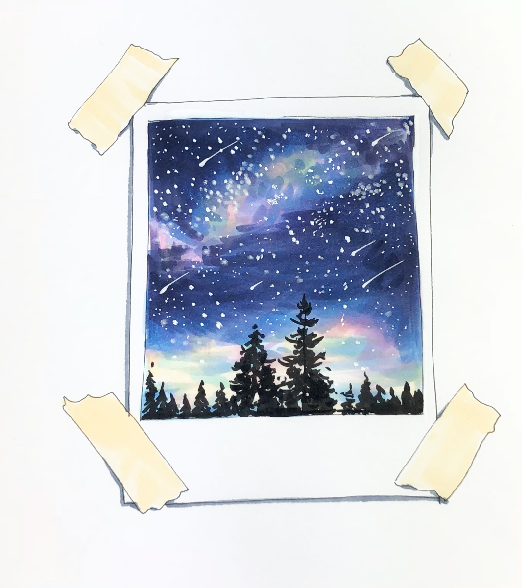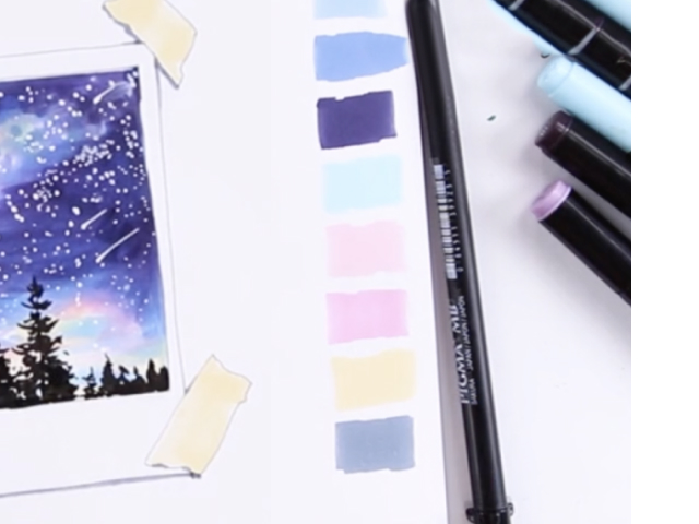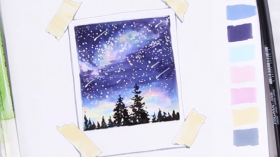 На уроке вы попробуете новую технику рисунка для небольшой эффектной иллюстрации, где каждый прикоснется к звездам. В итоге получится красивое звездное небо.