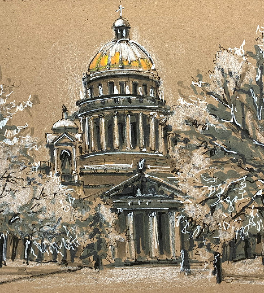- Пастельный карандаш - Rembrandt White Pastel, Faber-Castell Pitt Pastel, Stabilo Pastel Pencils, и многие другие тоже подходят - главное чтобы не мягкие, лучше medium или strong. На крафте мягкий осыпается. Можно белый акварельный карандаш использовать, к примеру Koh-I-Noor
