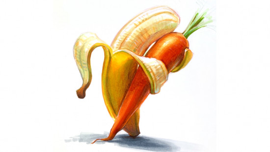 Наша задача – нарисовать влюбленную пару: банан и морковку.