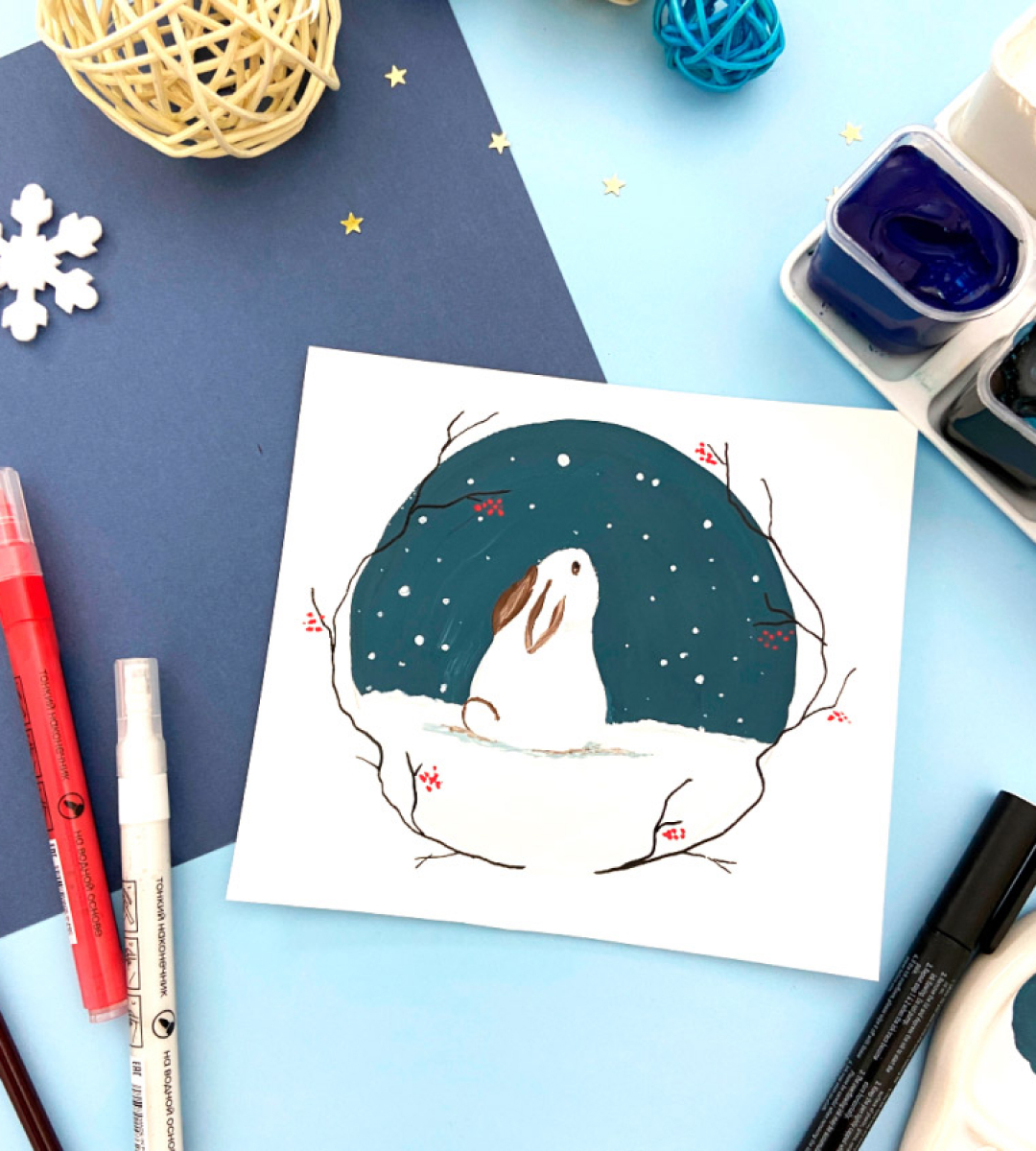 Давайте нарисуем зимнего зайца — это проще, чем кажется, а результат получается живым и выразительным. Не важно, есть ли у вас опыт в рисовании, главное — попробовать и поиграть с формой и деталями.